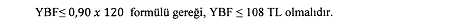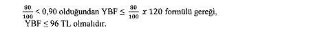 a) Yüklenicinin teklifi kapsamında yeni iş kalemi ile benzerlik gösteren iş kaleminin bulunması halinde, anılan Şartname maddesi uyarınca hesaplanan yeni birim fiyat (YBF); yüklenici tarafından benzerlik gösteren iş kalemi için teklif edilen birim fiyatın (BİTBF), idarece aynı iş kalemi için resmi analiz ve rayiçler de kullanılarak hesaplanan birim fiyata (BİHBF) oranı (0,90’ı aşmamak üzere) ile yeni iş kalemine ait resmi analiz ve rayiçler de kullanılarak hesaplanan birim fiyatın (BF) çarpılması sonucunda elde edilen tutarı geçemez. Bu itibarla, nihai olarak yeni iş kaleminin birim fiyatının hesaplanmasında aşağıdaki formül kullanılır.
